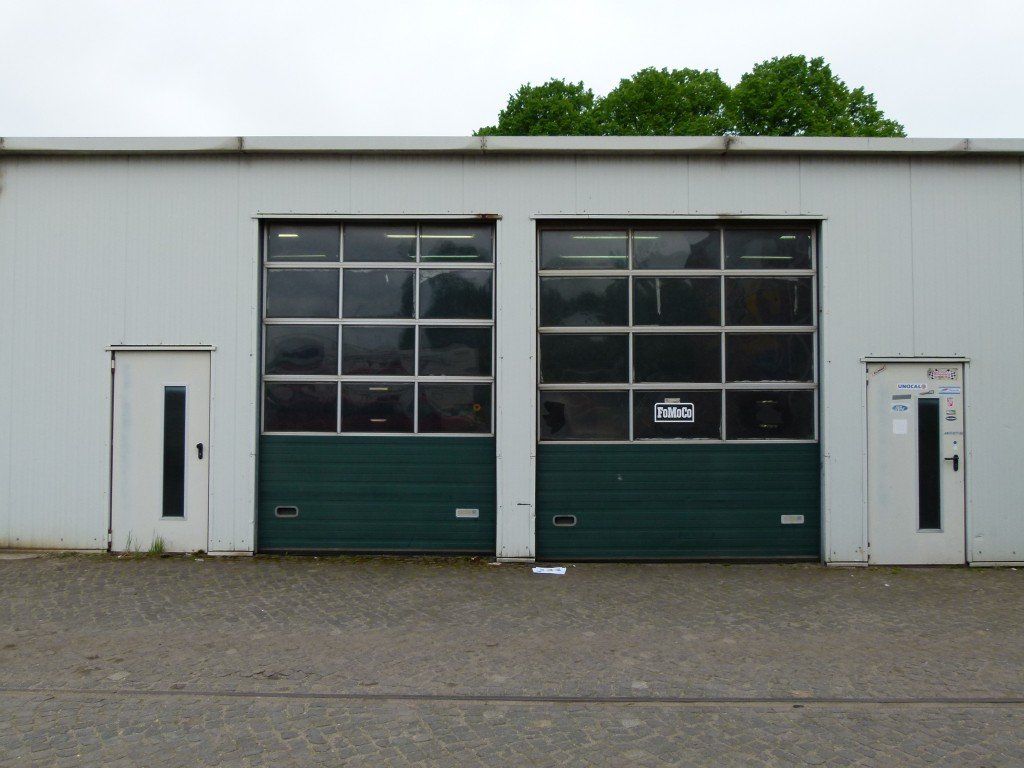 - 2 Sektionaltoren 2,5 m x 3,6 m (BxH) und 3,0 m x 3,6 m (BxH) mit 2 seperaten seitlichen Personaleingangstüren