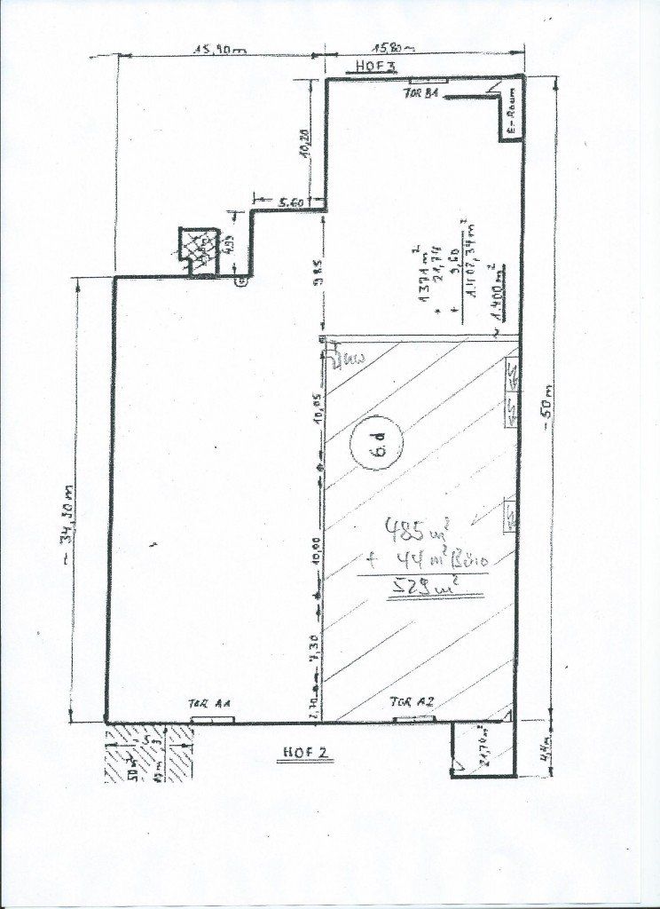 529 m² Lager/Halle mit kleinem Betriebsbüro 21,74 m² dito OG